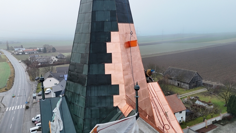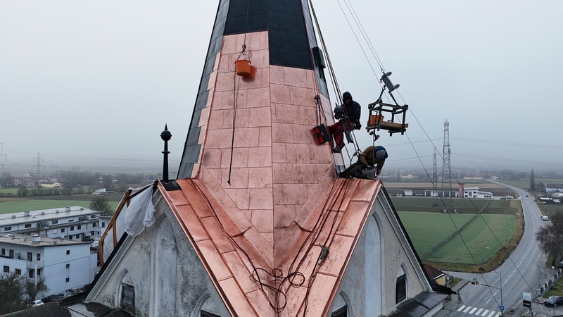 Mitte Dezember 2025 wurde der Schaden nun von der Firma Rainer Kotrnec GmbH behoben. Ein früherer Versuch war nicht vollständig, da der Hubsteiger nicht hoch genung war, um alle Stellen zu erreichen. Nun gab es Unterstützung durch die Firma Greil Reinhard GmbH mit Firmensiz in 9781 Oberdrauburg, die sich von oben abseilte.